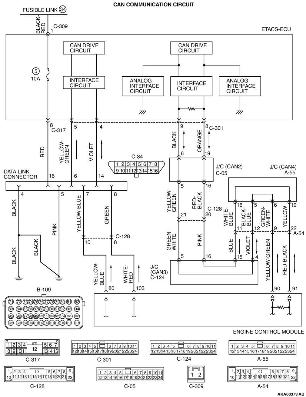 - When the communication between scan tool MB991958 and ECM is impossible, it can be suspected that the CAN bus line, power supply circuit of the data link connector, and/or grounding circuit are defective.