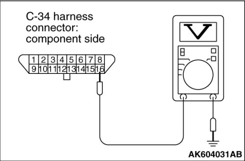 STEP 4. Measure the power supply voltage at data link connector harness side connector C-34.