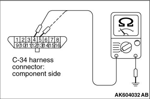 STEP 9. Check the continuity at data link connector harness side connector C-34.