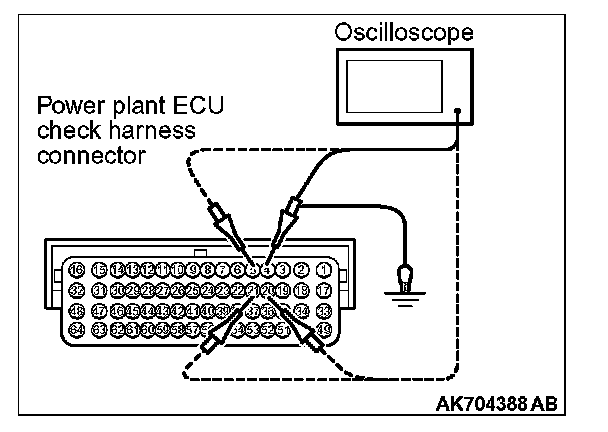 2. Connect the oscilloscope probe to each check harness connector terminal to analyze each cylinder: