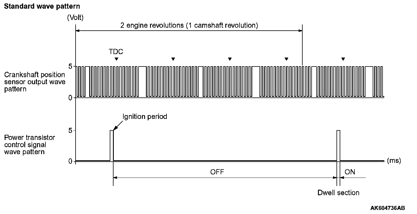 Point: The power transistor control signal (ignition timing) is advanced when the engine speed is increased.