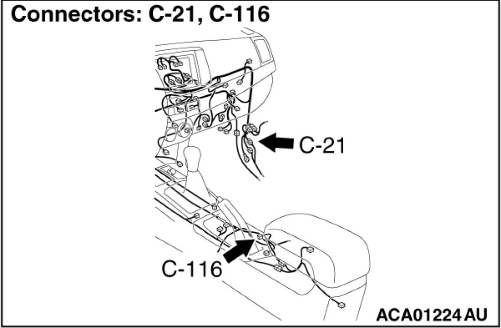 Also check intermediate connector C-21 for loose, corroded, or damaged terminals, or terminals pushed back in the connector. If intermediate connector C-21 is damaged, repair or replace the damaged component(s) as described in Harness Connector Inspection Harness Connector Inspection.