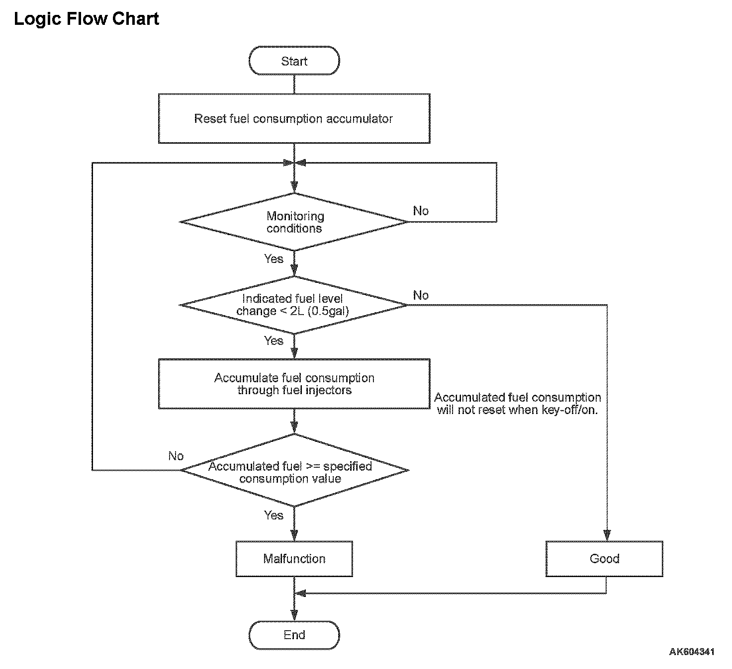 - When the fuel consumption calculated from the operation time of the injector amounts to 20 liters (5.2 gal), the amount of fuel in tank calculated from the fuel level sensor is less than 2 liters (0.5 gal).