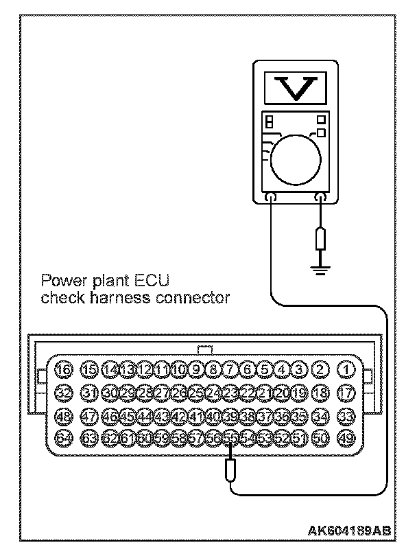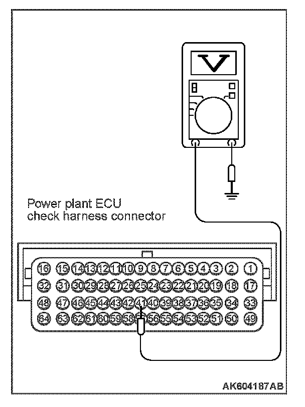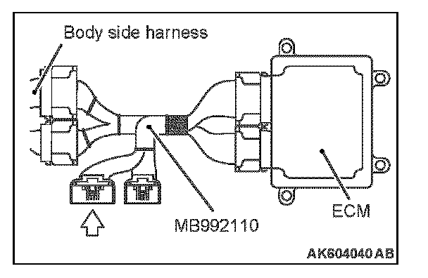1. Disconnect all ECM connectors. Connect the power plant ECU check harness special tool MB992110 between the separated connectors.