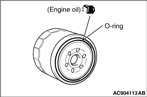 7. Apply a small amount of engine oil to the new engine oil filter O-ring.
