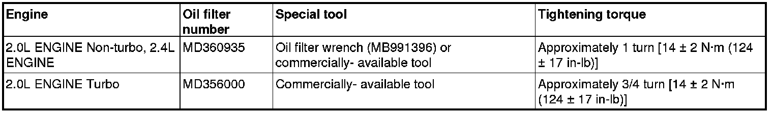 5. Use the respective tool in the following table to remove the engine oil filter.