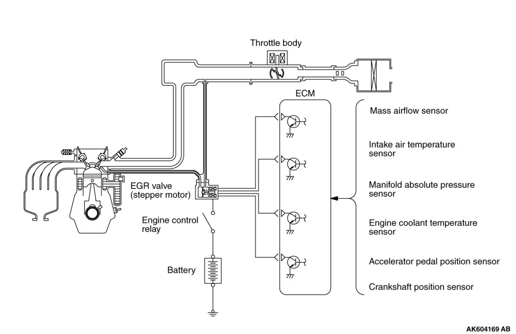 When the engine coolant temperature is low, when the engine is at idle or when a wide open throttle operation is performed, the EGR valve (Stepper Motor) is kept closed, achieving no EGR. After warming up the engine, the EGR valve (Stepper Motor) can be opened by the engine control module (ECM).