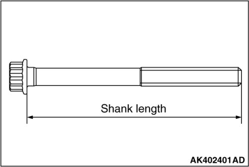 Make sure that the underhead length of the bolt is at or below the limit before installing the crankshaft bearing cap bolt. If the length exceeds the limit, replace the bolt with a new one.