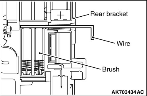 After installing the regulator assembly, insert a piece of wire through the hole in the rear bracket while pressing the brush to keep the brush against movement.