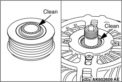 1. Clean the inner race of the front bearing and that of the pulley.