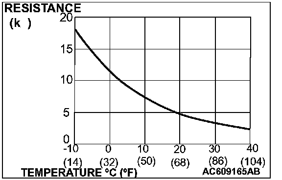 Measure the resistance between connector terminals 1 and 2 under at least two different temperatures. The resistance values should generally match those in the graph.