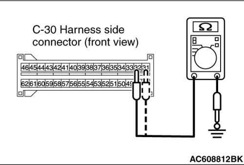 (5)Check for continuity between C-30 harness side connector terminals 31, 32 and body ground.