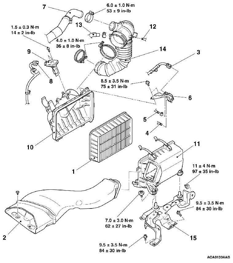 Do not over-tighten. If the mass airflow sensor installation screw is over-tightened, the air cleaner support thread may be damaged.