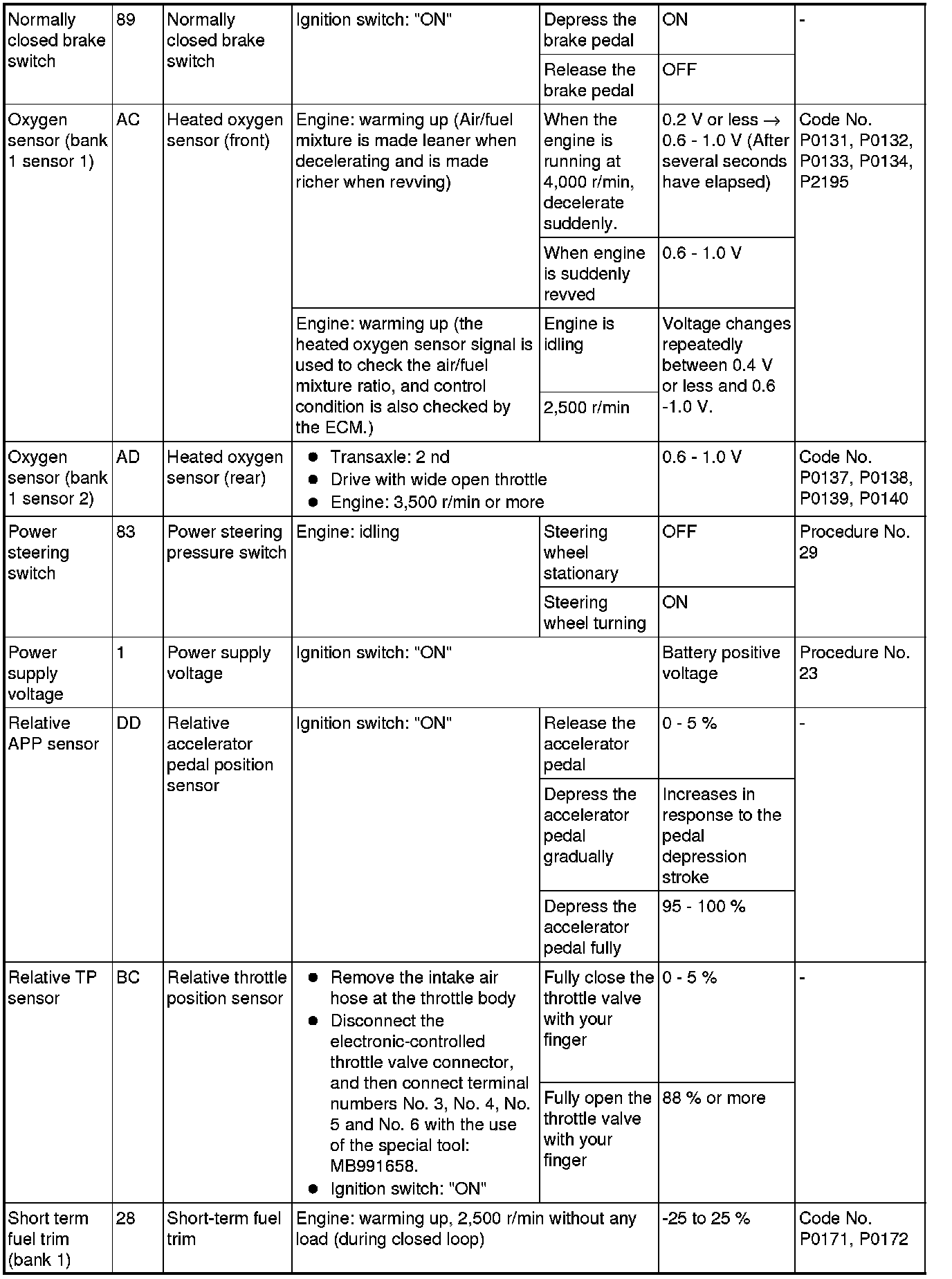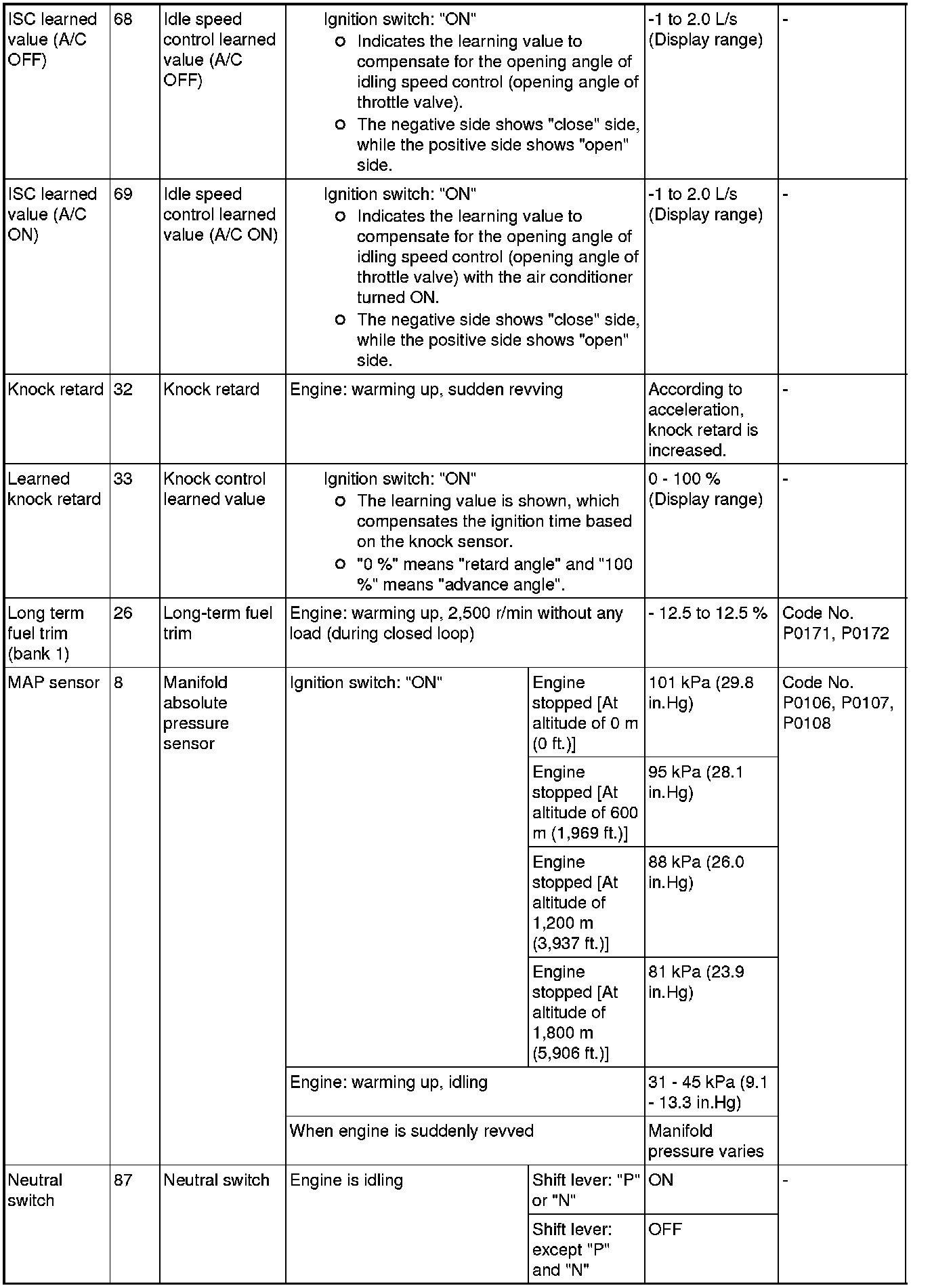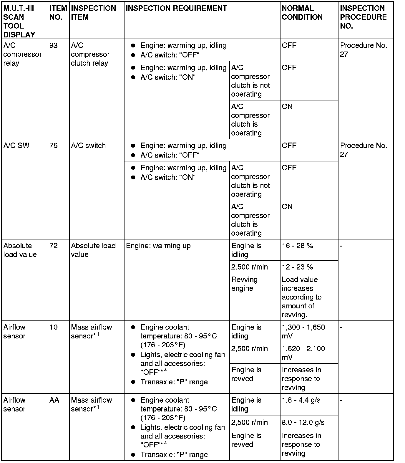 *1: In a new vehicle [driven approximately 500 km (311 mile) or less], the mass airflow sensor output value is sometimes 10% higher than the standard value.