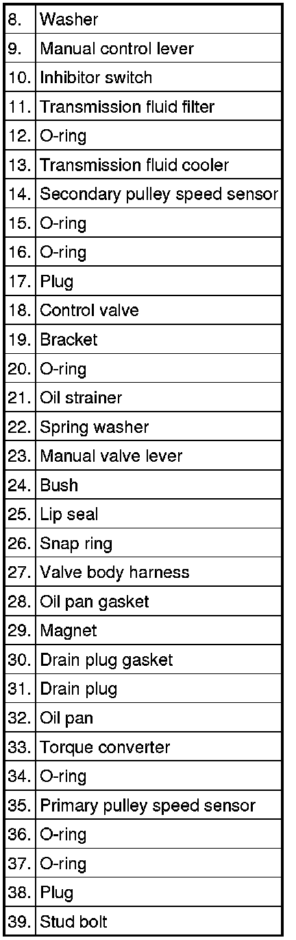 - Only use transmission fluid of the specified brand. Use of transmission fluid other than specified will impair driveability and CVT endurance, and may lead to breakage of CVT.