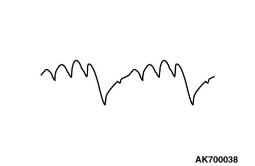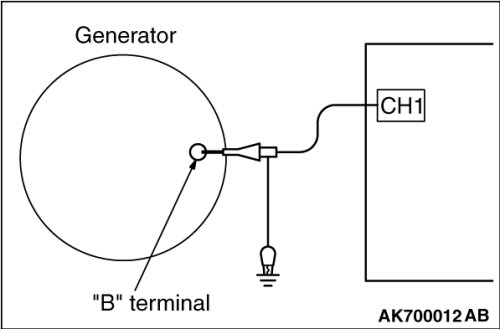 If the ripple height is abnormally high (approximately 2 V or more during idling), the wires between the generator "B" terminal and the battery have broken due to fuse blowing, etc. The generator is usually operating properly.