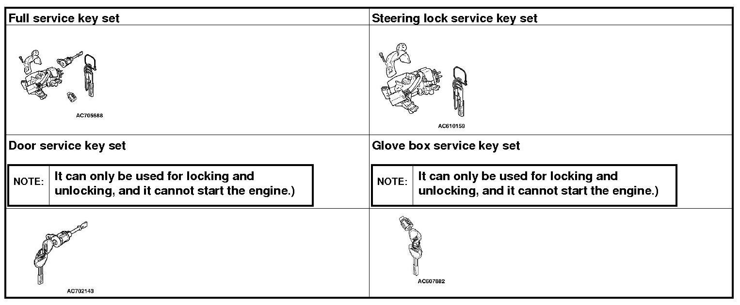 - *2: Key (the key that can be used to lock/unlock the door or glove box only)