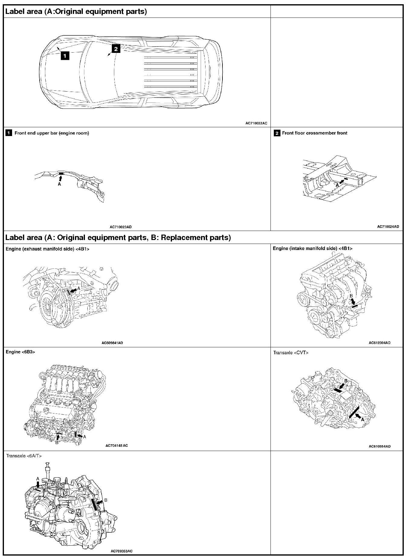 When replacing a part that has the theft protection plate, label or stamp on it, be sure that the part has either A or B shown in the figure. It is illegal if both A and B are attached, or neither A nor B is attached.