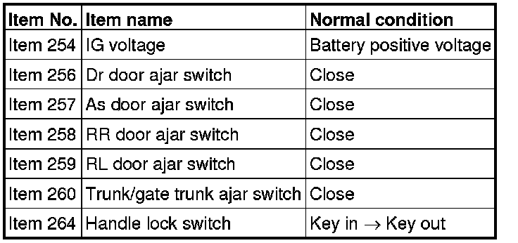 NO (Normal condition is not displayed for item No. 260.) : Inspection Procedure 9.