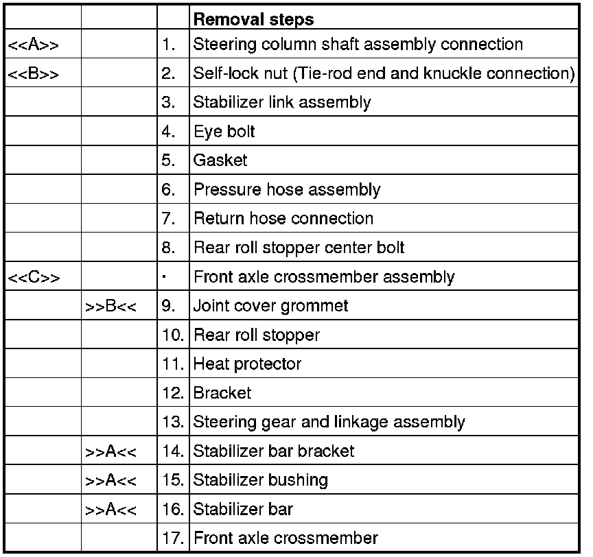 [[C]] FRONT AXLE CROSSMEMBER ASSEMBLY REMOVAL