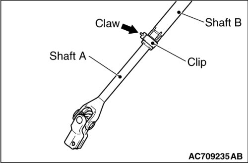 Disconnect the steering gear and linkage assembly from the steering column shaft assembly while sliding the shaft A to the shaft B with the clip claw as shown in the figure is pinched.
