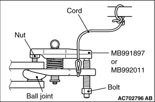 1. Install the special tool MB991897or MB992011 as shown in the figure.