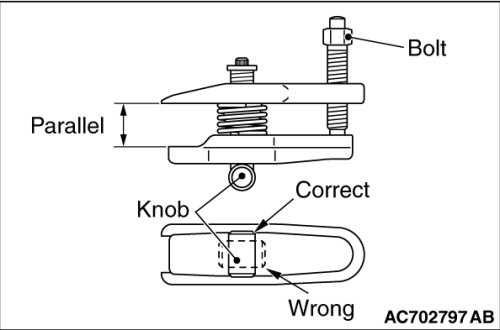 To adjust the special tool jaws to be parallel, set the knob as shown in the figure so that it functions as a fulcrum of the jaws.