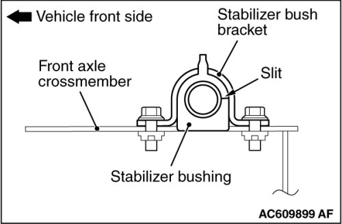 Install the stabilizer bar, the stabilizer bushing and the stabilizer bar bracket as shown in the figure.
