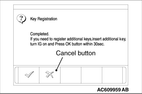 When the key cannot be registered using scan tool MB991958, refer to Inspection Procedure 2 "The keyless operation key cannot be registered using scan tool Inspection Procedure 2.