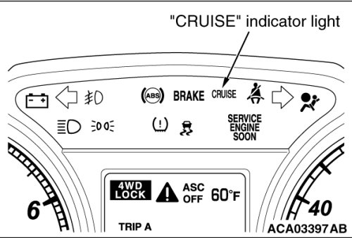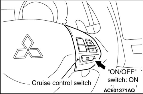 2. Press the "ON/OFF" switch (cruise control system: ON, "CRUISE" indicator light: illuminated).