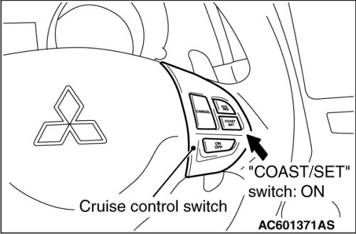 5. Check to be sure that deceleration continues while the "COAST/SET" switch is pressed, and that the speed at the time it was released becomes the constant driving speed.