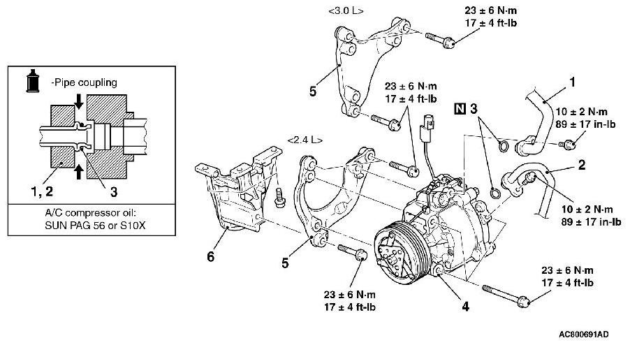 ]]A[[ A/C COMPRESSOR AND CLUTCH ASSEMBLY INSTALLATION
