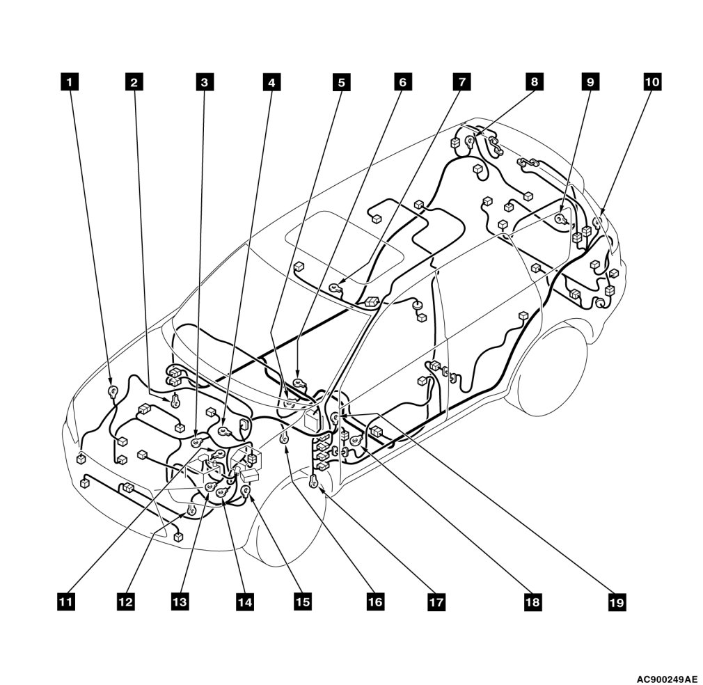 1 to 19 numbers correspond to the body ground point numbers in CIRCUIT DIAGRAMS.