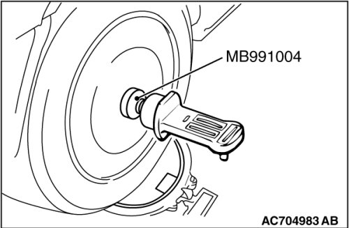 For vehicles with aluminum wheels, tighten special tool wheel alignment gauge attachment (MB991004) to the specified torque, then measure the camber.