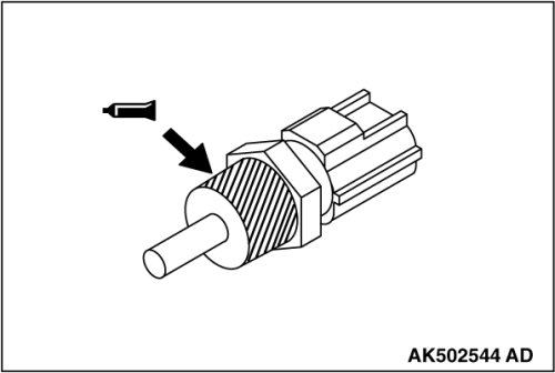 1. Apply an appropriate and minimum amount of sealant to the coolant temperature sensor, taking care not to allow sealant to squeeze out.