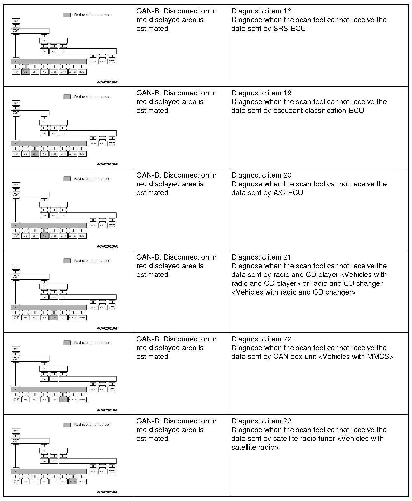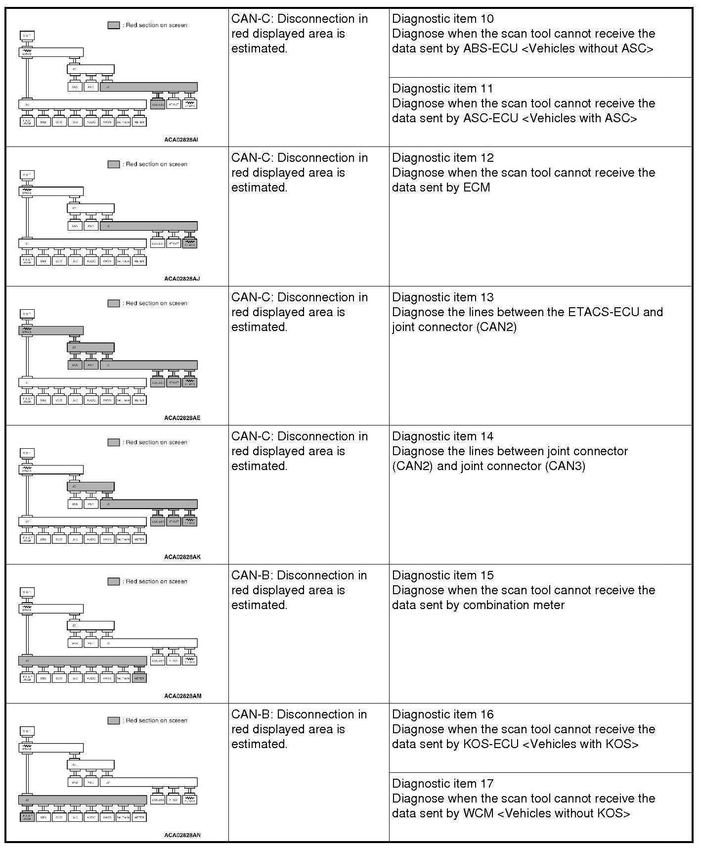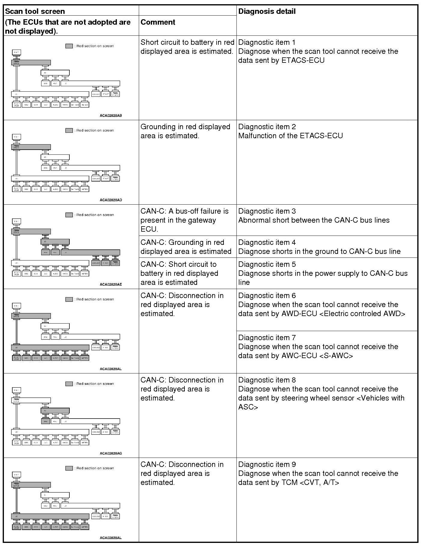 CAN BUS DIAGNOSTICS TABLE