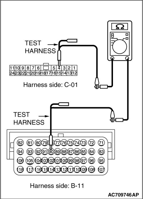 (2)Check the wiring harness between joint connector (CAN3) C-01 (terminal No.4) and ECM connector B-11 (terminal No.90)