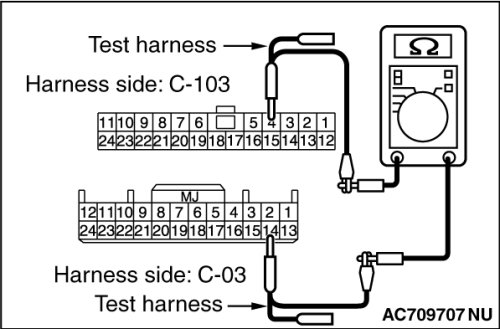 (2)Check the wiring harness between joint connector (CAN1) C-103 (terminal No.4) and combination meter connector C-03 (terminal No.14)
