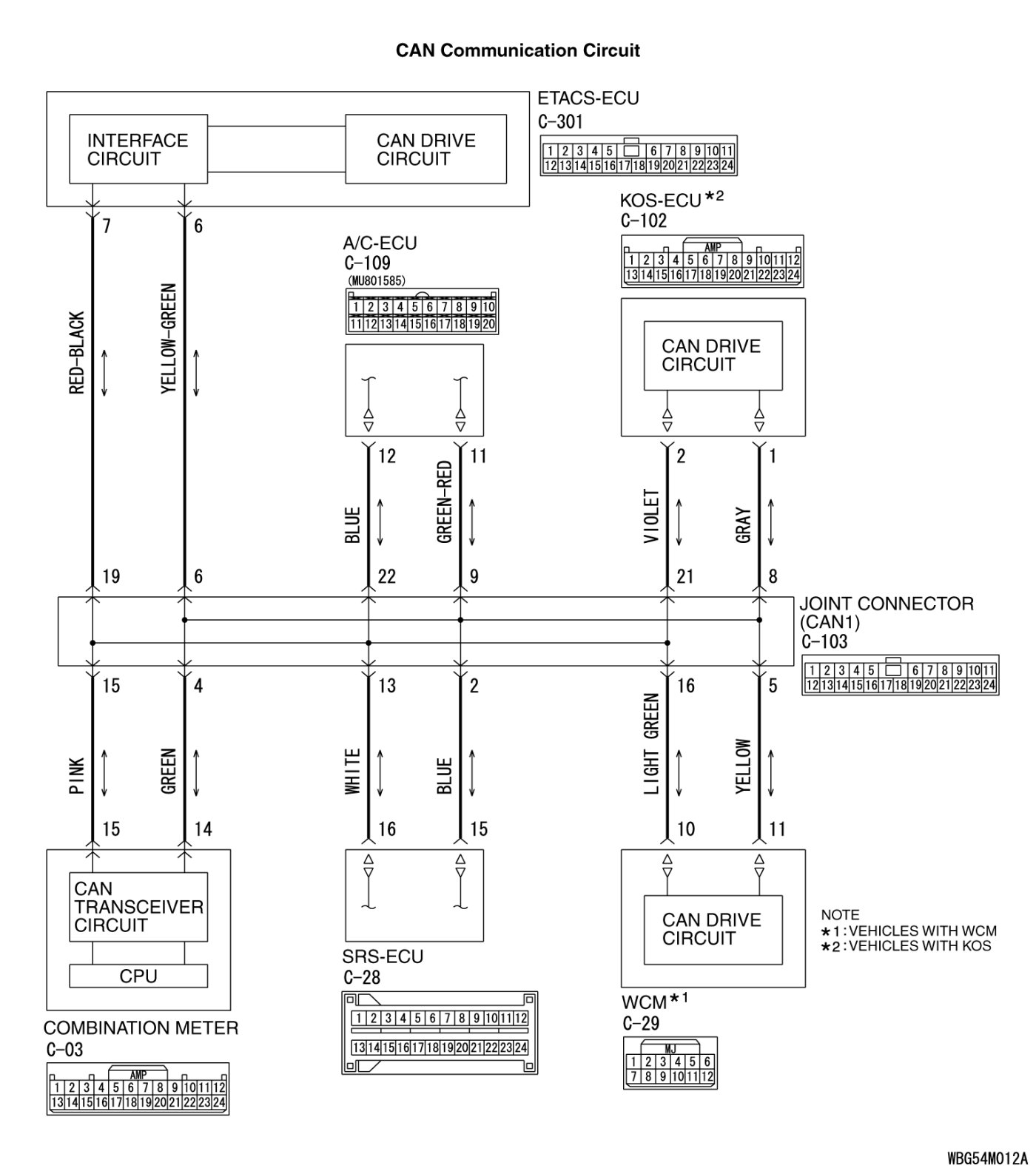 - Malfunction of the wiring harness [open circuit between the WCM connector and the joint connector (CAN1), power supply circuit to the WCM]