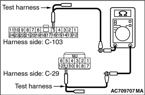 STEP 2. Check the wiring harness between joint connector (CAN1) C-103 and WCM connector C-29 for open circuit.