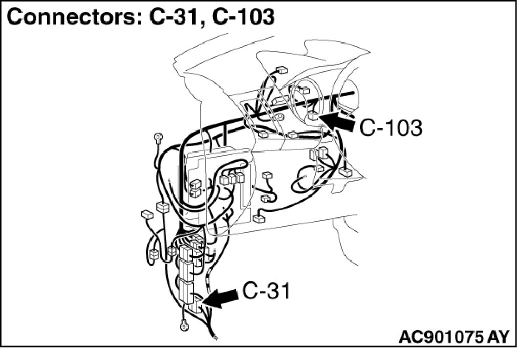 STEP 1. Check joint connector (CAN1) C-103, occupant classification-ECU connector D-34-2, front seat assembly (LH) connector D-34 and intermediate connector C-31 for loose, corroded or damaged terminals, or terminals pushed back in the connector.