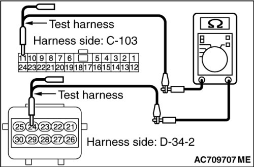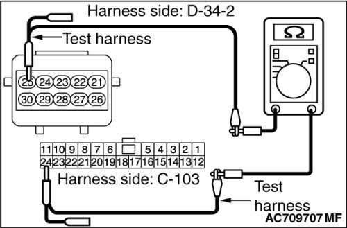 (3)Check the wiring harness between joint connector (CAN1) C-103 (terminal No.24) and occupant classification-ECU connector D-34-2 (terminal No.25)