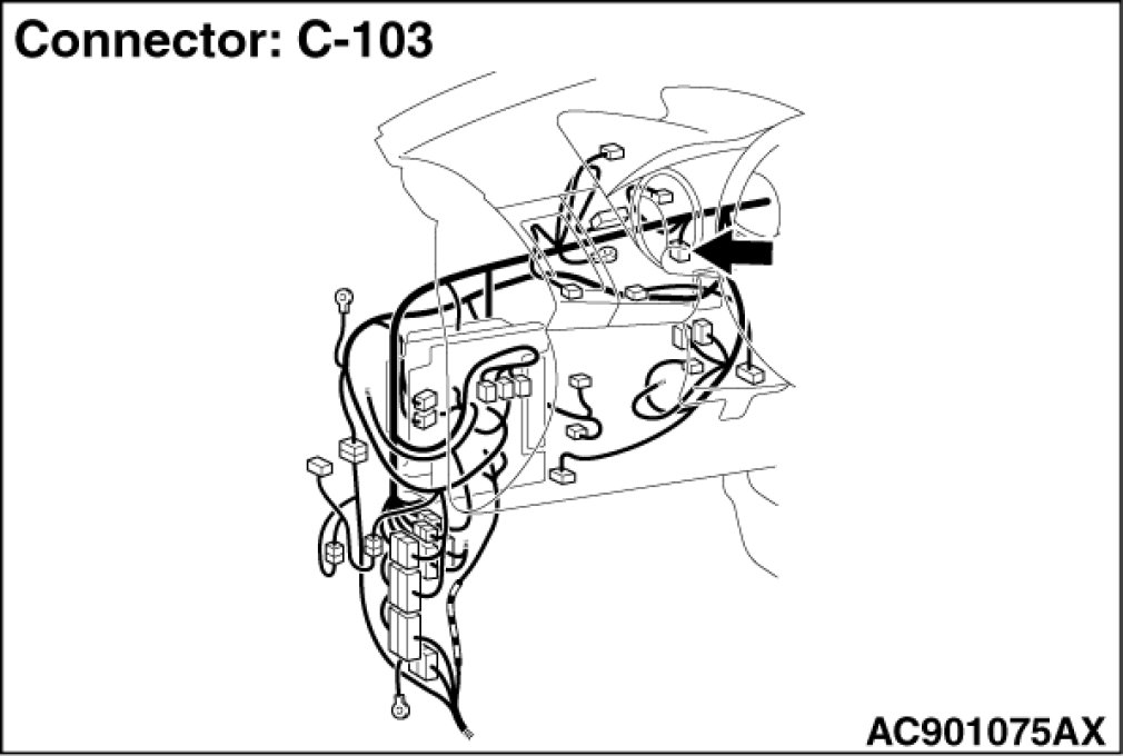 STEP 1. Check joint connector (CAN1) C-103 and radio and CD player or radio and CD changer connector C-16 for loose, corroded or damaged terminals, or terminals pushed back in the connector.
