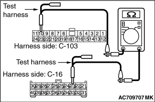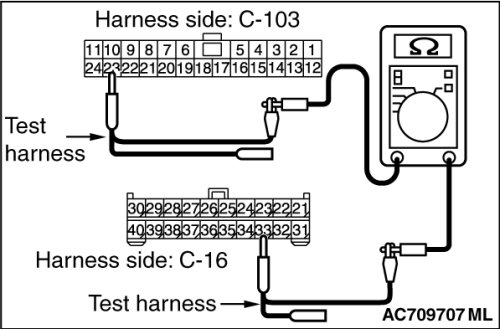 (2)Check the wiring harness between joint connector (CAN1) C-103 (terminal No.10) and radio and CD player or radio and CD changer connector C-16 (terminal No.23)