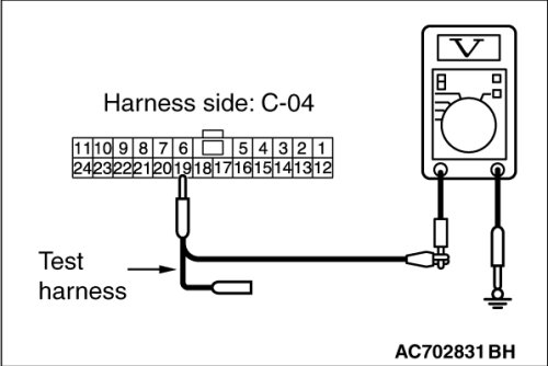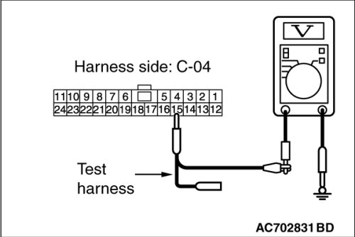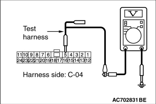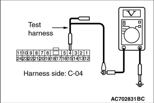 STEP 2. Check the wiring harness between joint connector (CAN2) C-04 and steering wheel sensor connector C-209 for a short to power supply. Measure the voltage at joint connector (CAN2) C-04.