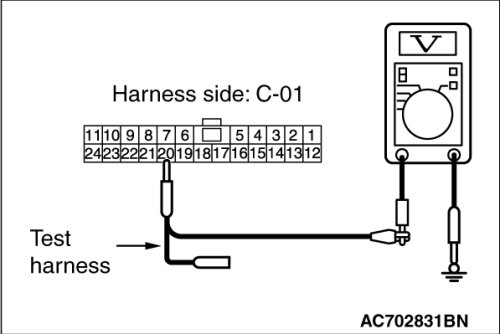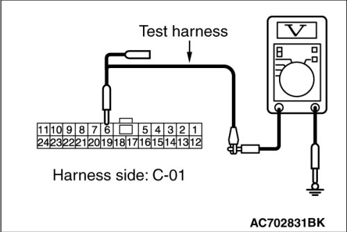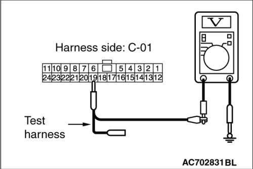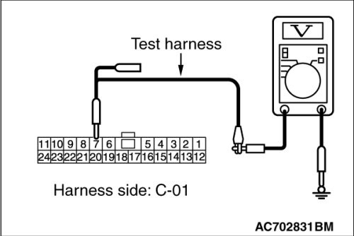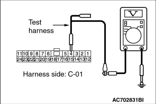STEP 6. Check the wiring harness between joint connector (CAN3) C-01 and ABS-ECU connector A-01 [vehicles without ASC] or ASC-ECU connector A-02 [vehicles with ASC] for a short to power supply. Measure the voltage at joint connector (CAN3) C-01.