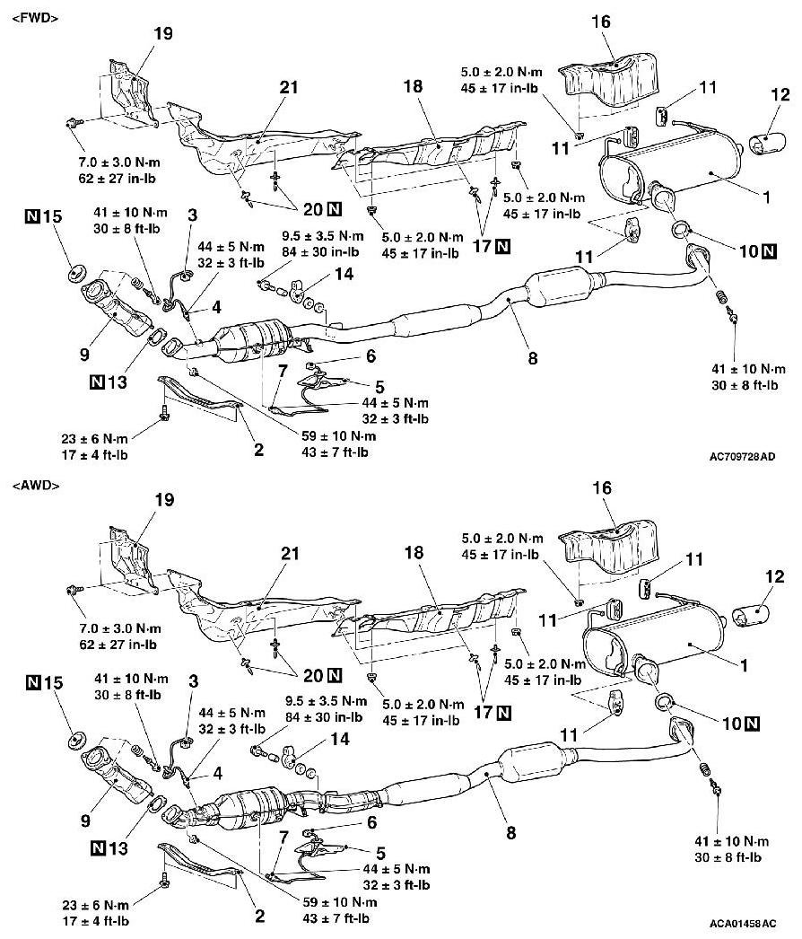 Tighten the linear air-fuel ratio sensor or heated oxygen sensor to the specified torque by using special tool MB991953.