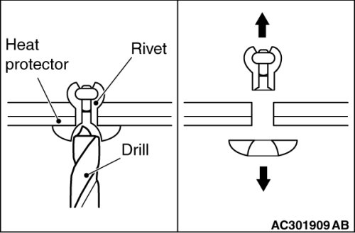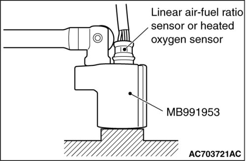 Remove the connection and clamp of linear air-fuel ratio sensor connector or heated oxygen sensor connector, and then use special tool MB991953 to remove the linear air-fuel ratio sensor or heated oxygen sensor.