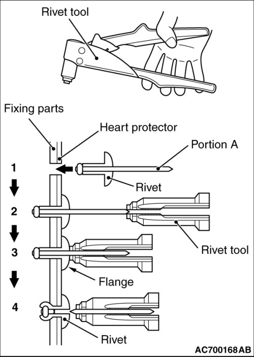 4. Thin part of portion A of the rivet will be cut off and the part is fixed in position.