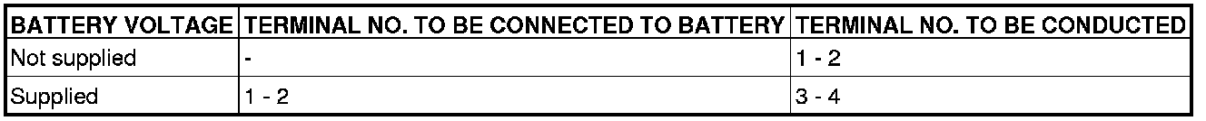Inspect the Injector relay and throttle actuator control motor relay for continuity in accordance with the chart shown below.